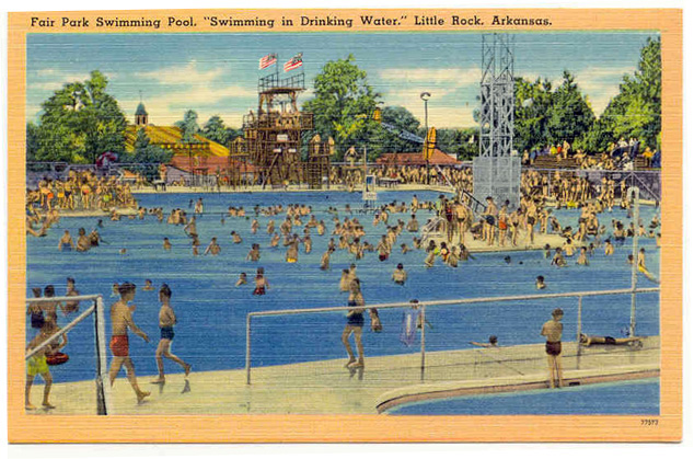 An old postcard, dated 1948, showing the Fair Park Swimming Pool