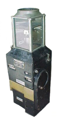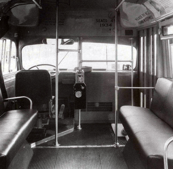This is a Johnson fare box from the 1950s. It was entirely manual. When a passenger dropped a coin or token into the receptacle at the top, the driver pressed the lever seen on the right just below the glass, and the round doohickey with the knob on it just below the lever went round and round (it drives the coin sorter). Each time the driver pressed the lever, the fare counter added one to the fare count, so if ten people got on at a stop, the driver pressed the lever ten times. Occasionally a coin jammed the mechanism and the driver had to use the knob to manually rotate the round doohickey and free the coin.